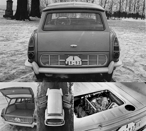 1959. tavaszán kezdték el a farmotoros 1000MB fejlesztését, és 1961. októberére készült el az az 50 prototípus, amelyeket különféle teszteknek vetettek alá. Az egyik autót, szám szerint a 34-es számú NOV (nový osobní vůz – új személyautó) autót utólag kombivá építették át, miután már 31 ezer kilométert tekertek bele a fejlesztők. A legnehezebb feladatnak a motor elhelyezése bizonyult, végül balra fektették le a négyhengeres alumínium blokkot, jobbra helyezték el a vízhűtőt. A motor felett a hátsó ülések lehajtása után 1,6 méteres tárgyakat lehetett szállítani, igaz, a terhelhetőség szerény volt, a négy darab 75 kg-mal számolt utas mellett csak 80 kg maradt a csomagoknak – amelyből előre is lehetett pakolni. A saját tömeg mindössze 811,5 kg volt, ennek 61%-a terhelte a hátsó tengelyt.