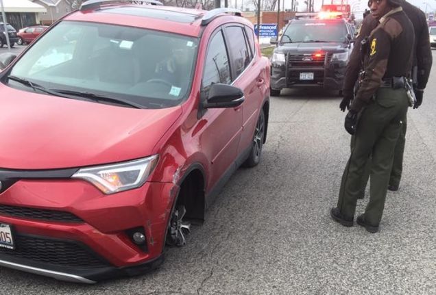 Extrém autós videót lőttek az USA-ban: a hét legvadabb sofőre úgy vezetett fényes nappal, forgalomban, hogy a bal első kerekéről hiányzott a gumi.