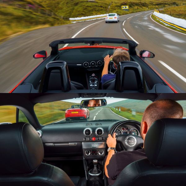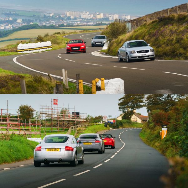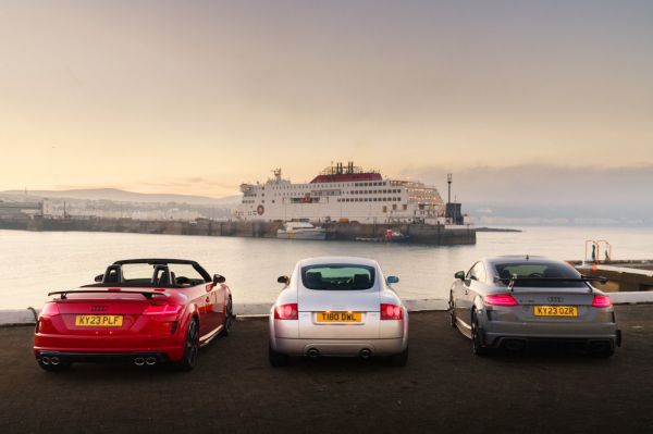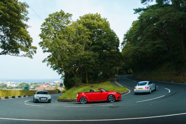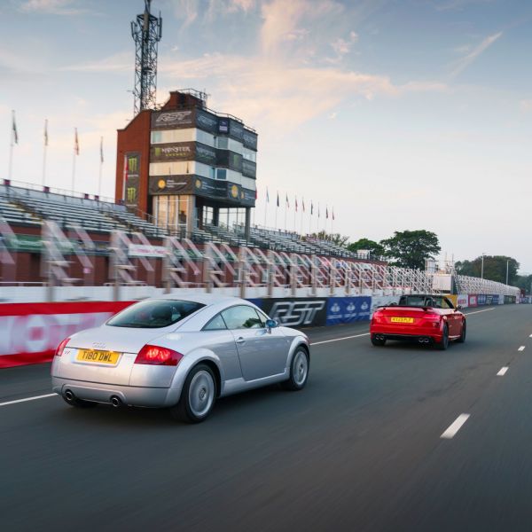 Az Isle of Man Tourinst Trophy versenyről kapta a TT nevet az Audi sportkocsija, ezzel a márka-előd NSU motorkerékpár-versenysikereire utaltak (ugyanígy tettek a 60-as években az NSU 1000TT, 1200TT és TTS modellekkel), persze a marketingosztály se hagyta ezt szó nélkül, és ők a Technology & Tradition kifejezést találták ki magyarázatként. 25 évvel a sorozatgyártás megindulása után búcsúztatják a típust, amelynek nemsokára kifut a gyártása, a brit forgalmazó ebből az alkalomból az Isle of Man TT pályát látogatta meg autóival.