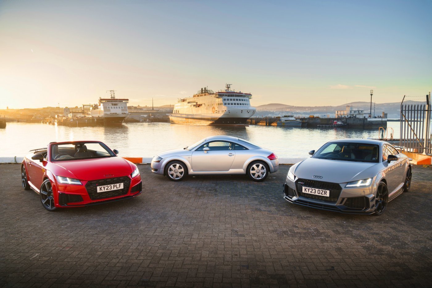 Az Isle of Man Tourinst Trophy versenyről kapta a TT nevet az Audi sportkocsija, ezzel a márka-előd NSU motorkerékpár-versenysikereire utaltak (ugyanígy tettek a 60-as években az NSU 1000TT, 1200TT és TTS modellekkel), persze a marketingosztály se hagyta ezt szó nélkül, és ők a Technology & Tradition kifejezést találták ki magyarázatként. 25 évvel a sorozatgyártás megindulása után búcsúztatják a típust, amelynek nemsokára kifut a gyártása, a brit forgalmazó ebből az alkalomból az Isle of Man TT pályát látogatta meg autóival.