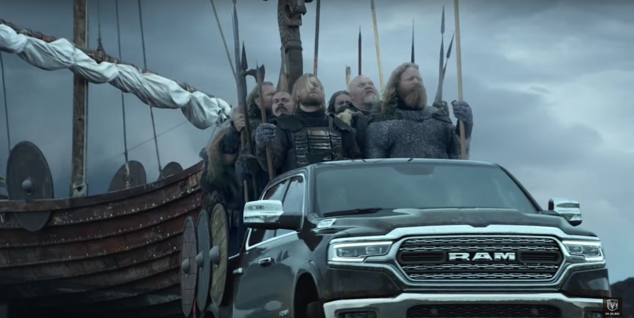 A Ram Trucks szintén többféle hirdetéssel készült, egész pontosan kettővel. Az egyikkel nincs is különösebb gond, torzonborz vikingek készülnek dicső hadjáratra, sárkányfejes hajójuk mellett egy pick-upot is becsomagolva, miközben a Queen “We will rock you” című slágerét süvöltik: