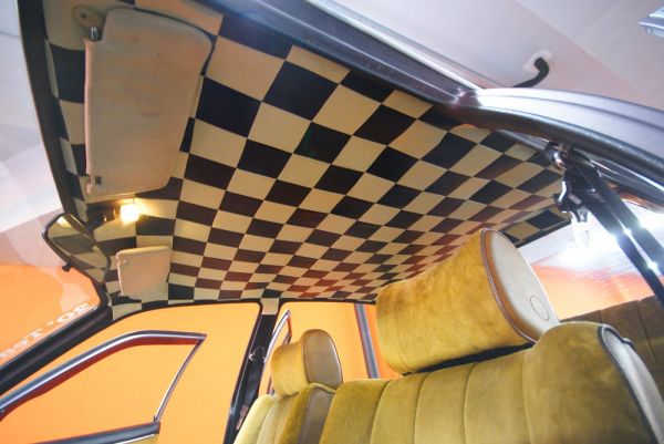 Az utastér javarészt gyári állapotú, a plüss kárpit egész jól viselte át az évtizedeket, nem égette ki a nap a hátsó szélvédő alatti peremet. Két eltérés van a gyári állapothoz képest, az első ülések közé került egy könyöklő, és a tetőkárpit pepita mintás. Utóbbi akkor került az autóba, amikor épp nem Zoltán tulajdonában volt – a sógornál majd egy közös ismerős is birtokolta a gépet, mielőtt visszakerült visszakerült hozzá –, már folyamatban van a megoldás, azaz egy gyári tetőkárpit beszerzése.