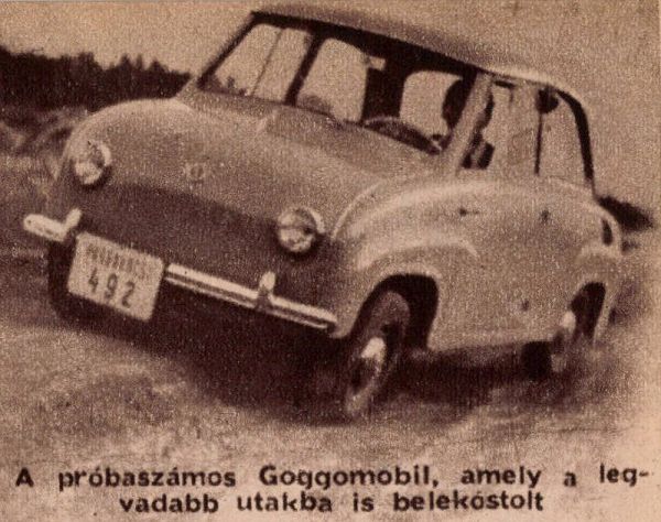 Nagyszerű érzés hozzákezdeni egy olyan témájú újságcikk írásához, amelynek megjelenését – úgy sejtjük – igen sokan türelmetlenül várják. Márpedig a törpeautókról bizonyára szívesen olvasnak. Az érdeklődés mértékét nem tudjuk fokokban mérni, de az biztos, hogy a napokban, amikor az Autó-Motor munkatársa és az Autóközlekedési Tudományos Kutató Intézet főmérnöke az egyik német gyártmányú törpeautóval, a kis Goggomobillal járt próbaúton, egy-egy megálláskor nemigen győzött felelgetni a kérdések százaira. A kérdések nem voltak könnyűek. Milliók olvasták a második ötéves terv elfogadott irányelvei között, hogy mi is fogunk törpekocsit gyártani, és akikkel mi találkoztunk, azok igen élénken érdeklődtek annak várható áráról. Azt hisszük, erre ma még a legilletékesebbek is nehezen tudnának válaszolni. Mi pedig semmiképpen nem adhatunk erre pontos feleletet, de úgy érezzük, nem sokat tévedtünk, amikor azt mondtuk, hogy a törpeautó – amely az oldalkocsis motorkerékpár szerepét tölti be – körülbelül annyiba kerülhet, mint egy szóló motor és egy oldalkocsi. Erre igen sok csalódást kifejező arcot láttunk magunk körül.