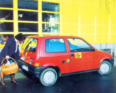 Régi szokásom, hogy miután beülök az autóba, nyomban bekapcsolom a rádiót. A Cinquecento vezetőjének jó közérzetéről a Philips cég programozható, gyárilag beépített rádiósmagnója gondoskodik. Azonkívül, hogy minden gombja könnyen, egyszerűen kapcsolható, rendkívüli előnye, hogy hangja elnyomja a kalaptartó nem túl zavaró, de kitartó zörgését. Az elérhető közelség sajnos nem mondható el a hátsó ablaktörlő, valamint a hátsóablak fűtéskapcsolójáról, ezekhez némileg előre kell hajolni. A műszerfalon az „anyósülés” előtt kiképzett óriási tér láttán felcsillant a szemem: végre egy autógyár, mely gondolt arra, hogy a nők táskát hordanak. Kiderült azonban: nem aktatáskára számítottak. Sebaj, gondoltam, legfeljebb a többnyire nálam lévő könyveket teszem oda. Már majdnem büszke voltam a megoldásra, amikor egy lendületes kanyarodás után mind szanaszét repült. Úgy döntöttem, praktikusabb s esztétikusabb is, ha a holmimat inkább a hátsó ülésen helyezem el. S ha már két helyes kis kampót is odakészítettek nekem, ráakasztottam frissen tisztított kosztümjeimet. Nem is gyűrődtek össze. S ha valaki jó francia szokás szerint egész hónapra egyszer vásárol, jól teszi, ha a hátsó üléseket lehajtva megnöveli a csomagteret, ami a tágas belső tér miatt egyébként igen kicsire sikerült.