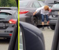 Meg akarta tolni az autót, hogy elinduljon, de elfelejtette, hogy lejtőn áll – VIDEÓ