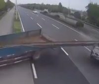 Nem jelezte a túlnyúló rakományt a sofőr – iszonyatos baleset lett a vége (videó)