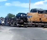 Nem figyelt a sofőr, fent maradt a sínen a tréler vége, és jött a vonat… – VIDEÓ