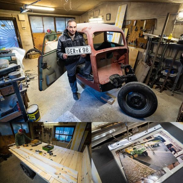 Egykor a Nógrád megyei főállatorvos szolgálati gépjárműve volt. Teljesen szétszedte és másfél év alatt építette újra, ez volt az első autó, amit felújított. Eredetileg gépészmérnöknek készült, azonban elkeveredett a jelentkezési lapja, így géplakatosnak tanult. Ez a szakma jó alapnak bizonyult, amihez az elmúlt évek alatt sokféle ismeretet elsajátított, volt, amit autodidakta módon. Ilyen például a fa megmunkálása a veterán járművek karosszériájához.