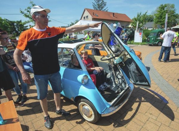 A túloldalon egy nagyobb csoportra lettünk figyelmesek, akik egy Buborékra keresztelt veterán BMW-t álltak körbe. Nagyon érdekes autóról beszélünk, ugyanis a kocsi ajtaja a motorháztető „helyén” van, ott nyílik a sokak által csodált mini kocsi. Az autótulajdonosa, Márton Miklós a Haonnal megosztotta, a ’90-es évek elején került hozzá a kocsi, sok évig pihent egy műhelyben, majd restauráltatta. – Jelenleg is forgalomban van, üzemképes, 1958-ban gyártották, 300 köbcentis, 1961-ben egy lelkész hozta be Magyarországra, egy ősmagyar autóról beszélünk. Körülbelül 50-el tud menni, nagyon nehéz váltatni, egy motorkerékpár motor van benne – emelte ki. Hozzátette, nem egyszerű vele közlekedni az utakon, ugyanis imádják az autósok, mindenki megcsodálja.