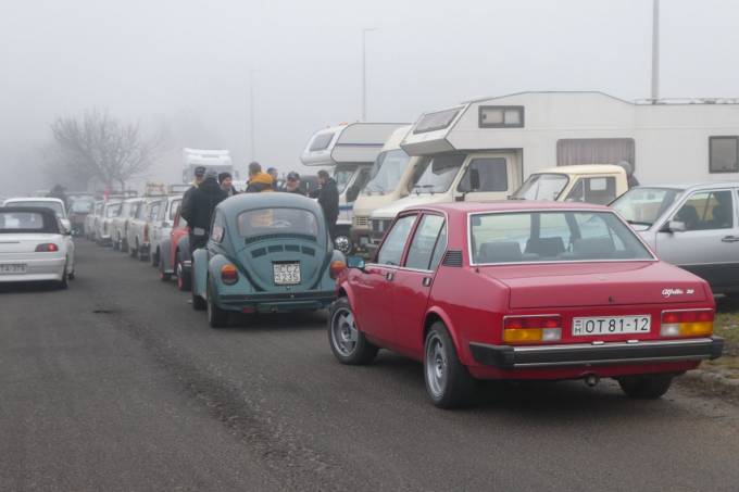 Noha korántsem volt ideális az időjárás – nagyon nem akart fölszállni a köd, így a hőmérséklet is fagypont közelében maradt –, mégis nagyon sokan jelentek meg a Szilveszteri veteránautó-találkozón. Az igazsághoz hozzátartozik, hogy néhány motorkerékpár is megjelent, de azokat is szállították, és nem keréken jöttek. A korábbi évekkel ellentétben megtelt az egész parkoló, a látogatók elég gyorsan a szervizút melletti murvás részre szorultak, és ott is hamar elfogytak a helyek.