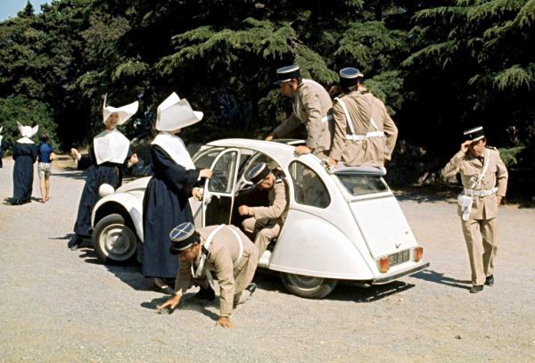 Méltatlan lenne egyetlen csendőr-filmet választani a hat közül, hiszen csaknem mindegyiket felturbózták egy emlékezetes jelenettel, melyben a helyi apácák egy Kacsával száguldanak a dél-francia vidéken. Az ötletet már első alkalommal (A Saint-Tropez-i csendőr) is láthattuk a vásznon. Az 1964-es kasszasiker képkockáin a kedves nővér akkor még csak Lütyőt vitte el egy rázós körre, az 1970-es folytatásban (A csendőr nyugdíjba megy) már az egész őrsöt beültették a kis Citroënbe, hogy heves imádkozásra bírják őket, majd Funès utolsó filmjében (A csendőr és a csendőrlányok) a nővér körül teljesen elfogy a 2CV, mire eljut a céljához.