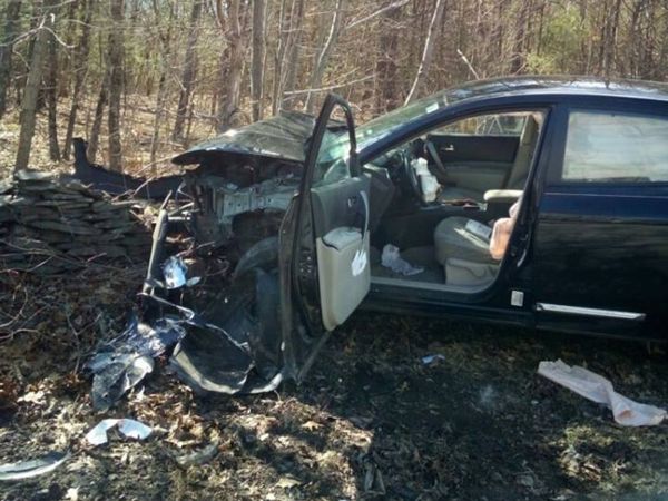 A kocsi totálkárosra tört, a hölgyet pedig lábsérüléssel kórházba kellett szállítani, de még így is elmondható, hogy szerencsésen jött ki a balesetből – különösen, ha ránézünk az autó elejére.