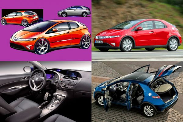 A Civic történetének legmerészebb formatervét hozta a 8. generáció, az extravagáns, mégis harmonikus külső-belső dizájnnal megkülönböztetett 3- és 5 ajtós Nagy-Britanniából, a kissé idejétmúlt benyomást keltő 4 ajtós Japánból került Európába, a kupét viszont csak Észak-Amerikában forgalmazták. A limuzinként készülő hibrid 1,4 literes benzinmotorja 95, villanymotorja 20 lóerőt adott le. Ezúttal két különböző Type R készült, Európában csatolt lengőkaros hátsó futóművű 3 ajtós, Japánban független hátsó futóművű 4 ajtós került a szalonokba, a 2,0 literes szívóbenzines előbbit 201, utóbbit 225 lóerővel mozgatta.