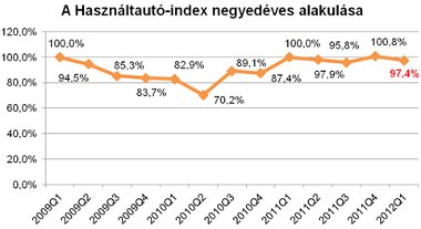 A Használtautó-index értéke (97,4%) annak ellenére csökkent több mint három százalékpontot, hogy a regisztrációs adó kedvező változása nyomán az év elejétől ismét csúcsra jár a használtautó-behozatal. A belföldi tulajdonosváltások száma azonban jelentősen visszaesett, és a kínálati átlagár is az 1,6 millió forintos szint alatt ragadt. Az okokról és a további kilátásokról szól a Használtautó.hu alábbi elemzése.