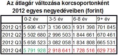 Az 1,5 milliós átlagár azonban értelemszerűen jelentős szórást takar az egyes korosztályok között: az év utolsó negyedében a 0-2 éves használt személyautók átlagos kínálati értéke ugyanis a Használtautó.hu oldalain megközelítette az 5,8 millió forintot. 3-5 éves autóhoz átlagosan 2,9 millió forintért, 6-8 éves személygépkocsiért 1,7 millió forintért lehetett hozzájutni, míg egy 9 év feletti autóért elegendő volt átlagosan 630 ezer forintot fizetni. A fenti táblázatból az is kiolvasható, hogy a három évnél idősebb autók átlagára minden korcsoportban jelentősen (7-11 százalék között) csökkent az év során, ugyanakkor az alacsony kínálat miatt a 0-2 éves korcsoportba tartozó járművekért átlagosan három százalékkal többet tudtak elkérni tulajdonosaik.