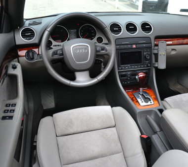 Az A4 Cabrio vászonkapucnija alig fél perc alatt, gombnyomásra nyitható-csukható. A kabin akár a normál A4-esé, az átláthatóság alapvetően rendben, csak a navigátor körül találni a kelleténél több és apróbb gombokat. Az ülések kényelmesek, jól tartják a testet, a hátra történő beszállás pedig nem ördöngösség – az első ülések ugyanis elektromosan előrecsúsztathatók. A csomagtér nyitott tető esetén 245, míg zárttal 315 literes, a terhelhetőség 480 kilogramm.
