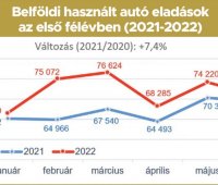 2022 első félévében a Datahouse adatai szerint 68 965 import használt személyautó került hazai forgalomba Magyarországon, ami a tavalyi hasonló időszakhoz képest 9,8 százalékos növekedést jelent.