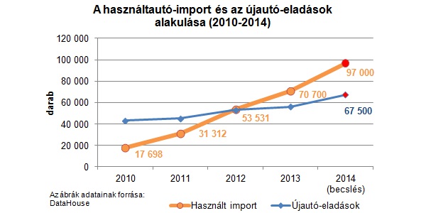 Noha az új autók piaca is éledezik, egyre inkább a használtautó-import jelenti az utánpótlási forrását a hazai autóparknak, amely ezen a csatornán keresztül továbbra is jellemzően német márkájú, idősebb, középkategóriájú autókkal gyarapodik. Újabb lendületet kapott a használtautó-behozatal, melynek növekedési üteme a tavalyi 32 százalék után idén 40 százalék körüli szintet érhet el. Ennek eredményeként 2014-ben 97-98 ezer külföldről származó használt személyautó hazai forgalomba helyezésére lehet számítani.