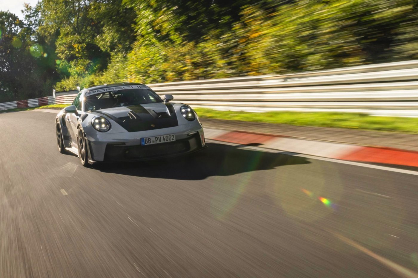 A Porsche 911 GT3-asnál 10,6 másodperccel gyorsabban, 6:49,328 alatt ment körbe a 20,8 km hosszú Nürburgring Nordschleifén a Porsche 911 GT3 RS, a volán mögött az a Jörg Bergmeister ült, aki a fejlesztés során a finomhangolásból is kivette a részét. A hatalmas hátsó szárnyat használó aerodinamikai csomag a kulcsa a fürgeségnek, hiszen 285 km/h-s tempónál 860 kg a leszorító-erő, ami háromszorosa a sima GT3-as értékének.