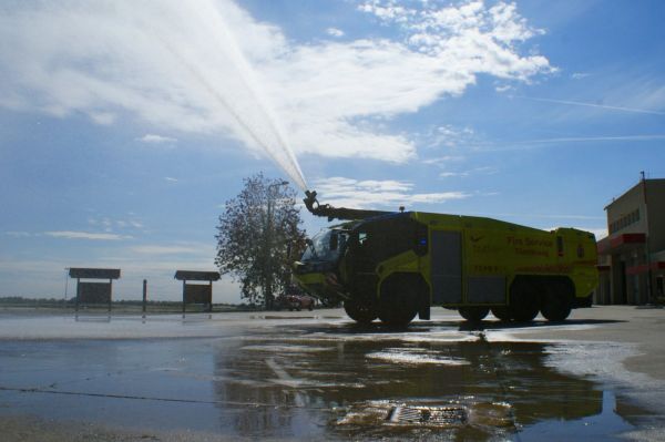 “Foam hetes, foam nyolcas, szerre!” – szólal meg a hangszóró, nem sokkal a hivatalos átadás előtti pillanatokban. A két harmadik generációs Panther tűzoltó ekkor kigördül a sajtótájékoztató idejére lezárt Bravo gurulóútra, hogy aztán aktív vízágyúkkal köszöntsék legújabb testvérüket, a Foam-9-es lajtstromszámú, negyedik generációs Panthert.
