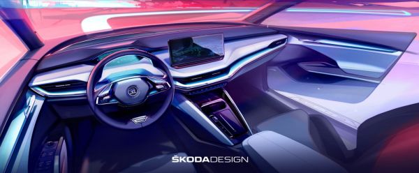 Amíg a Volkswagen az ID.3-as kompakttal lép piacra, a Škodánál az ID.4-es testvérmodellje, az Enyaq iV nevű szabadidő-autó lesz az első autó az MEB építőkészleten. A csehek csak szeptember elsején leplezik le az autót, de addig is közreadták az első vázlatokat az utastérről.