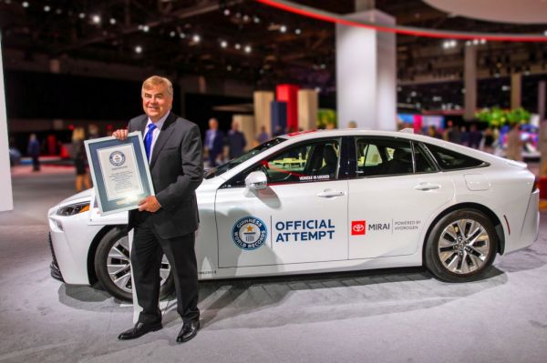 Augusztus 23-án és 24-én került sor a rekordkísérletre, egy öt perces feltöltést követően Michael Empric, a Guinness Világrekordok képviselője leplombázta az üzemanyagtartály fedelét, majd a Toyota Mirai útnak indult a Gardena városában található Toyota Technical Centerből – itt fejlesztik a tüzelőanyagcellás technológiájukat. A volánnál felváltva Wayne Gerdes és Bob Winger ült.