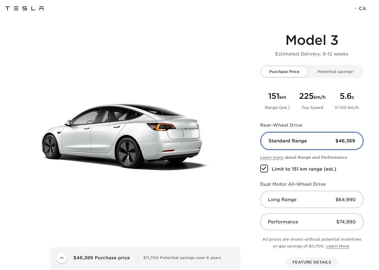 Kanadában vételárhoz kötött az 5000 kanadai dolláros állami támogatás a villanyautók számára, a Tesla legolcsóbb autója, a Model3 Standard Range a maga 52 990 kanadai dolláros vételárával már túlságosan drágának számít. A gyár úgy hidalja át a problémát, hogy kifejezetten a kanadai piac számára szoftveresen 151 km-re korlátozza az egy feltöltéssel megtehető távolságot, és letiltja a vezetőtámogató rendszereket is, és így 46 389 dollárra csökken az alapváltozat vételára, amire aztán igényelhető az állami támogatás. Eddig nagyon kevesen döntöttek a fapados Model3 mellett, leginkább azért, mert mostanáig csak telefonos megrendeléskor lehetett kérni ezt a kanadai modellt, a webes konfigurátorban csak most tették elérhetővé azt. Nem valószínű, hogy ennek ellenére megugrik a népszerűsége, hiszen az 52 990 dolláros alapmodell a maga 423 km-es hatótávolságával sokkal jobb használhatóságot biztosít. Arról nincs hír, hogy a Tesla újraértékesítéskor (használtautó) kiveszi-e a szoftveres hatótávolság-korlátot a Model3-asból, vagy az egész életében elkíséri a konkrét példányt.