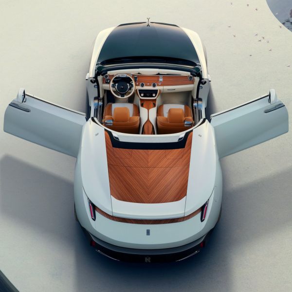 Nyílt pórusú Santos Straight fából készítették az utastér és a karosszéria fa betéteit, a 233 fadarab elkészítése 8000 munkaórába került. A tulajdonos világszerte használni akarja majd autóját, ezért olyan speciális lakkot készítettek a szabadon lévő – a levehető tetőpanel által nem védett helyen – lévő fa fedélzethez, amelyet elég csak egyszer felvinni, nem kell újra és újra frissíteni azt. A különleges lakk kifejlesztését 18 fadarabon tesztelték 1000 órán keresztül úgy, hogy eláztatták azokat, majd hagyták, hogy azok megszáradjanak és erős UV-sugárzással együtt világították a darabokat. A fehér fényezést úgy tették izgalmassá, hogy a lakkrétegbe alumínium és üvegport kevertek, ami sejtelmes csillogást biztosít a lemezeknek, a karosszéria alsó részén levő karbon elemeket szürkére fényezték le, hogy azok ne vonják el a figyelmet a fontos részektől. Az utastérben használt 2 bőrszínt is ehhez a fényezéshez és a fabetétekhez készítették, azokat az ügyfélről nevezték el, és más autónál nem fogja azokat használni a Rolls-Royce.