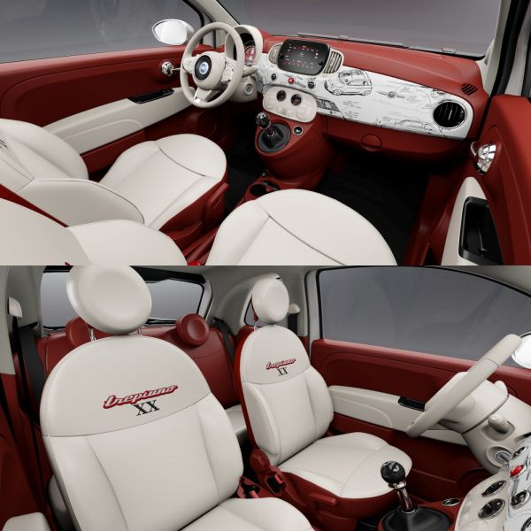 Kétszínű valódi bőrrel vonnak be minden felületet az utastérben, az első ülések támláján ott a szériának a neve, a műszerfalon pedig Roberto Giolito eredeti vázlatrajzaiból készített kollázs látható. Nem tudjuk, mennyire (időben, vagy darabszámban) limitált a Fiat 500 Tributo Trepiuno széria, de azt igen, hogy minden egyes példányhoz annak eredetiségét igazoló dokumentációt mellékel az FCA Heritage. Műszakilag nincs változás, a kézi váltós lágyhibrid változat alapján épül a tanulmányautót ünneplő szériaautó.