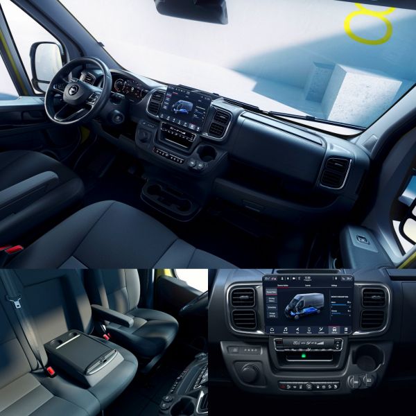 Az Opel Movano Electric mellett már kezdettől fogva elérhető a dízelmotoros változat (120, 140 vagy 180 LE, 6 fokozatú kézi kapcsolású váltó vagy 8 fokozatú automata, 9%-kal mérsékelt fogyasztás a korábbihoz képest), 2024-től pedig az Opel Movano Hydrogen is választható lesz. A tüzelőanyagcellás-elektromos modellről csak annyit árultak el, hogy annak hatótávolsága 1 feltöltéssel eléri a 400 km-t, és a tartályok feltöltése 5 percet vesz igénybe. Alapesetben analóg műszereket kap az Opel Movano, de elérhető 7 colos digitális műszeregység, a 10 colos képátlójú érintőképernyős fejegység vezetéknélküli telefoncsatlakoztatást kínál, és világnyelveken beszédvezérlés is elérhető. A felfrissített modell az összes korábban ismert konfigurációban elérhető, a zárt karosszériánál 3 tengelytáv és 3 tetőmagasság közül lehet választani, van szimpla- vagy duplafülkés járóképes alváz, de lesz gyári építésű billenőplatós változat is.