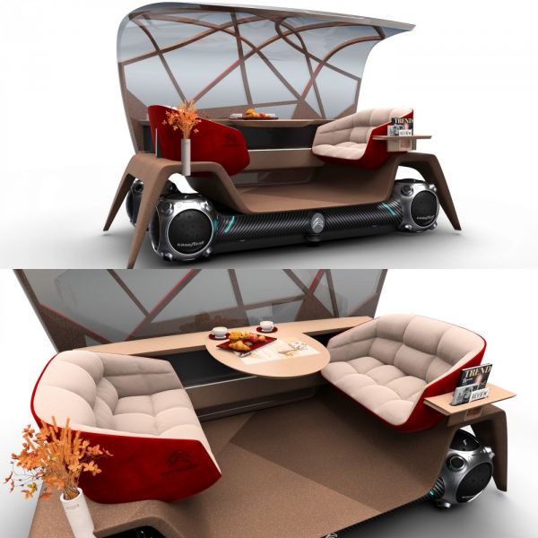A kínai piacra három, különböző élményeket nyújtó, egyedi pod készült, amelyek kifejezetten a kínai életstílus igényeihez igazodnak: ezek a Cozy Capsule, az Immersive Air és a Wander Café. A Cozy Capsule két ember számára kínál intim, bensőséges hangulatú utazást. Amikor egyre több a dugóban töltött idő és a nagyvárosokra jellemző ingázás, a Cozy Capsule mindent megtesz, hogy minél pihentetőbb legyen a reggeli munkába járás, és minél kevésbé érezzük fáradtnak magunkat, amikor egy kimerítő nap után hazautazunk. A pod tervezői a francia parfümös üvegekből merítettek ihletet: a design jellegzetes elemei a lapos alap, a kristályburok és a naplementét idéző hangulatvilágítás. A kristályburok belsejében egy narancssárga színű, tojáshéj formájú ülés található. Az ultrakényelmes ülés 180 fokban hátradöntve teljesen fekvő helyzetbe is állítható. A belső kialakítás és a puha tapintású Alcantara részletek a Citroen Advanced Comfort technológia vívmányai. Az áttetsző ellenző lehúzásával még meghittebb hangulat varázsolható, az utasok így valóságos védőburokban érezhetik magukat. A fő üléssel szemközt a kettesben folytatott beszélgetésekhez egy másik ülőhelyet is kialakítottak. A parafából készült ülés háttámlája oldalra nyúlva egyben kartámaszt is képez. A beépített légtisztító és a plafonról lelógó, önöntöző zöld növények üdítően hatnak, és kellemes hangulatot árasztanak. Az újrahasznosított anyagokból készült alapnak és a nagyrészt parafa borítású enteriőrnek köszönhetően ez a pod kimondottan környezetbarát designt képvisel.