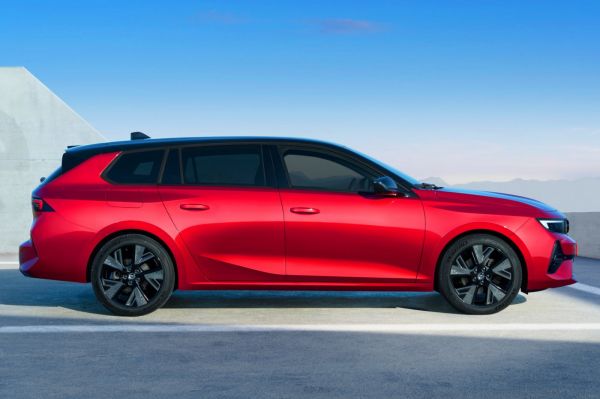A padló alá beépített akkumulátorral nem csökken a csomagtér mérete a plug-in hibrid változathoz képest, a kombinál 516-1553 literes lehet a raktér. A műszerfal megegyezik a többi változattal, és itt is az automatikus váltó irányválasztó kapcsolóját használják, az Astra Electric esetén alapfelszerelés a 18 colos felni. Az 5 ajtós változat már 2023 tavaszától rendelhető, a kombi fél évvel később érkezik.
