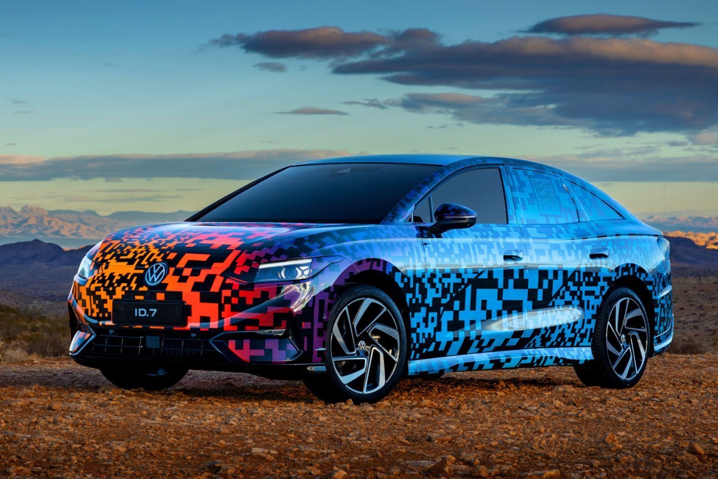 Maga az álcázás trükkös, összesen 40 rétegben vittek fel elektromosan vezető és elektromosan szigetelő festéket és lakkot a karosszériára, az autó 22 részét lehet egyenként vezérelni, azaz elektromos gerjesztés hatására világítani kezdenek a festékben található elektrolumineszcens anyagok. Nagy méretű az ID.7 (hossz 4,94 méter, szélesség 1,86 méter, magasság 1,53 méter), a tengelytávolsága 2,97 méter, így sok hely van akkumulátornak, a legnagyobb hatótávolságú változat egy feltöltéssel nagyjából 700 km-t tud majd megtenni. A beltér újdonsága a 105 colos képátlójú központi érintőképernyő mellett az okos légkondi, amely a légáramlás irányításával a szükséges legkevesebb helyet temperálja, illetve egyszerűen utasítható olyan parancsokkal – világnyelveken, nem magyarul –, mint „Fázik a kezem”, és ebből már tudja az autó, hogy a kormányfűtést kell aktiválni.