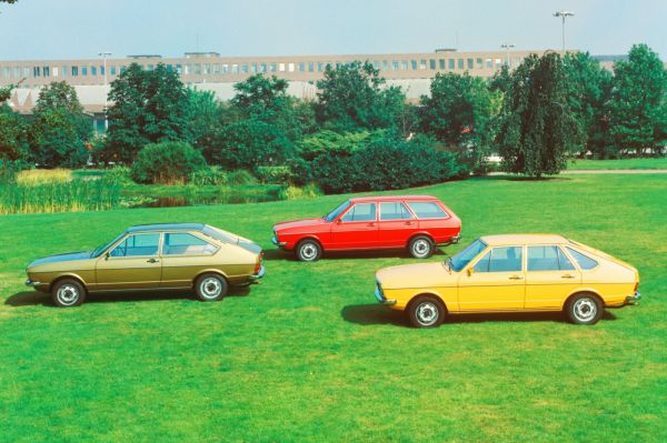 A Volkswagen kitartott Giugiaro formaterve mellett, amely a könnyű megkülönböztethetőség jegyében ferdehátú befejezést kapott. Amikor 1973. május 14-én megkezdődött a sorozatgyártás, 2- és 4 ajtós karosszériával volt elérhető a Passat, a kombi 1974. januárjában csatlakozott ezekhez, a nagy méretű tetőig nyúló hátsó ajtóra 1975. januárjáig kellett várni a ferdehátú változatnál.