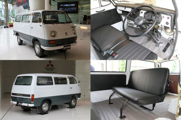 1968. április 25-én jelent meg az első Mitsubishi Delica kisbusz, amely épp csak túlnőtt a kei-kategórián a maga 3,86 méteres hosszával, 1,54 méteres szélességével és 1,79 méteres magasságával. Személyszállító, teherszállító és platós kivitelben készült, az első ülések közötti benzinmotor 1,1 vagy 1,4 literes lehetett. A név egyébként az angol DELIvery CAr, azaz szállítójármű kifejezésből származik.
