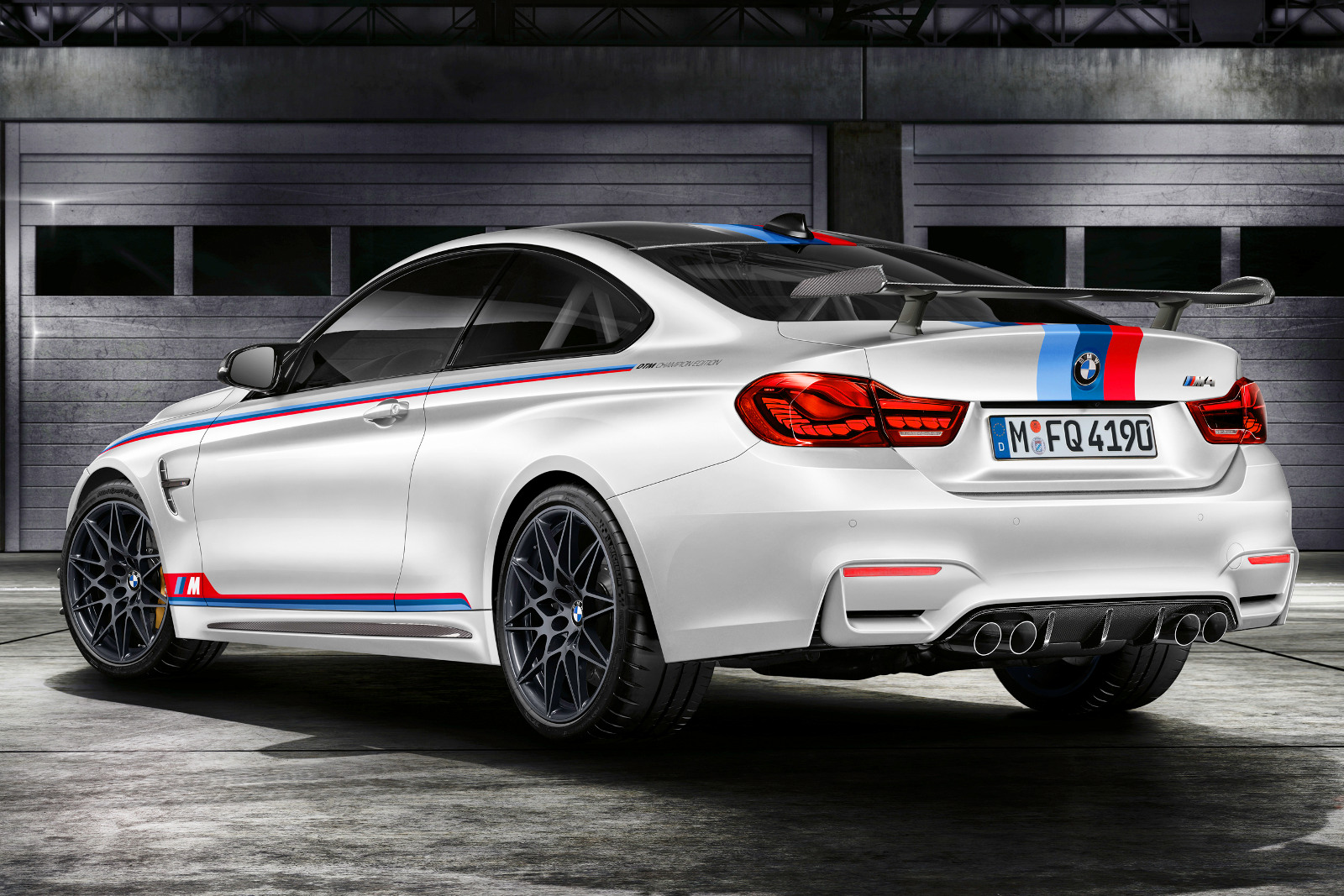 Alpesifehér színben és némi matrica-dekorral jön az összes BMW M4 DTM Chamipon Edition, nem spóroltak a látható karbon kiegészítőkkel sem. A legjelentősebb átalakítást az jelenti, hogy csak két M Carbon kagylóülés van az utastérben, amelyeket alcantara/Merino bőr borít, egyébként kipakolták a belsőt és alcantarával kárpitozták be, a hátsó ülés helyére csavarozott bukókeret fehér színű. Egyébként minden fontos extra – csúcs-navi, adaptív LED féynszórók, OLED hátsó lámpák, parkolóradar, stb. – ott van a fedélzeten, hiszen nem verseny-, hanem ünnepi autóról van szó. Titnáiumból készített hátsó dobok kerültek a kipufogórendszerbe, elöl 265/35 R19, hátul 285/30 R20-as Michelin Pilot Sport Cup 2 abroncsokat használnak, a felnik mattszürke 666-os típusúak, mögöttük karbon-kerámia fékek láthatóak. Németországban 148 500 euró az ára a különleges M4-esnek.