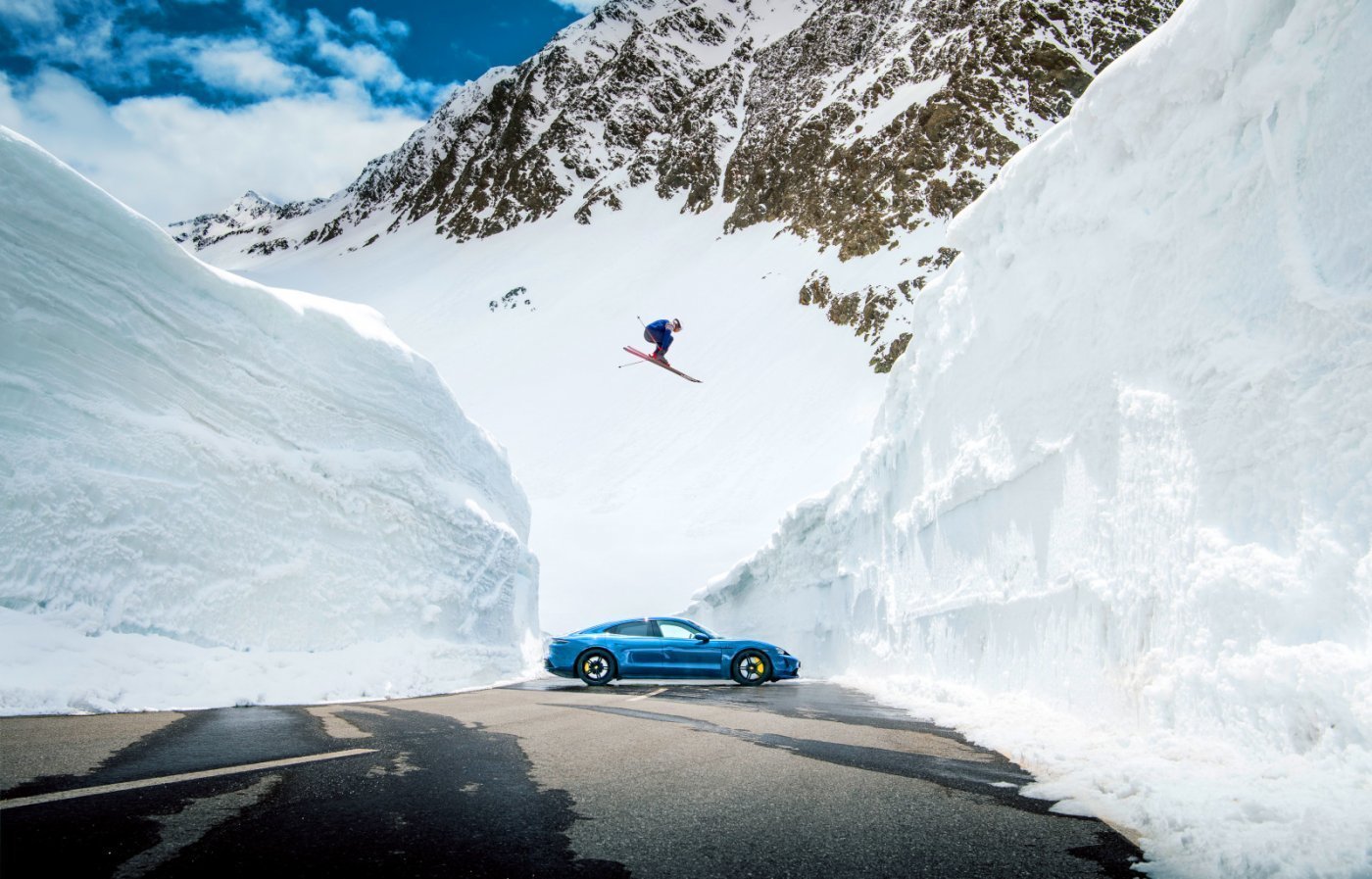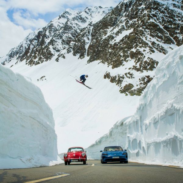 1963-ban Egon Zimmermann ugrott át egy Porsche 356-os felett, most ezt a fotót ismételték meg egy Taycan villanyautóval és Aksel Lund Svindal részvételével. Az új fénykép felvételére meghívták Egon öccsét, Karlheinz Zimmermann-t és unokaöccsét Michaelt is, akik aztán végignézték, hogyan ugrik át újra és újra a norvég síelő – egyben márkanagykövet – az autó, illetve az autók felett, hiszen a múzeumból egy 356-ost is kerítettek az eseményre.
