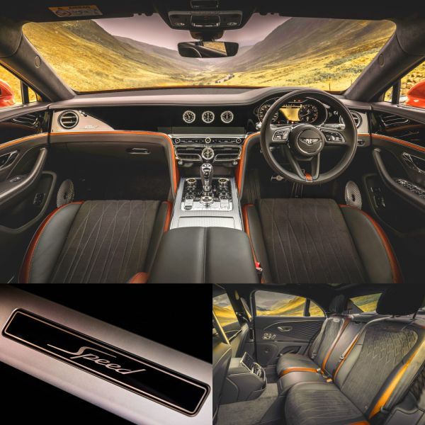 A megjelenést fekete ráccsal megtöltött nagyobb méretű szellőzőnyílások, 22 colos felnik teszik egyedivé, és az eddigi 5 helyett már 15 -féle bőr közül lehet alapáron választani. Egyébként a Bentley megjegyzi, hogy a gyári kombinációk alapján szó szerint milliónyi változatban rendelhető a Bentley Flying Spur Speed, és akkor még ott van a Mulliner műhely, amely akár extrém kívánságokat is megvalósít a megfelelő térítés ellenében.