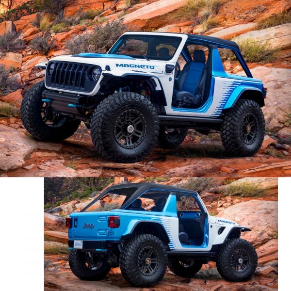 Idén egy újabb, akkumulátoros-elektromos hajtású Jeep Wranglert építettek a mérnökök, a Magneto 2.0 továbbra is a lehető legegyszerűbb átalakítást kapja, azaz a 6 fokozatú, kézi kapcsolású váltóba hajt bele a hajtómotor, de a korábbinál kétszer nagyobb áramerősségre – 600 A – méretezték a kábelezést, így a csúcsteljesítmény 625 lóerő és 1152 Nm! Annak érdekében, hogy a 4 modulból álló, 70 kWh kapacitású lítium-ion akkumulátornak elég hely legyen, 30,5 centivel megtoldották a tengelytávolságot, a futóműnél 7,6 centit emeltek, és 40 col átmérőjű terepabroncsokat szereltek a Dynatrac 60 Pro-Rock első, és Dynatrac 80 Pro-Rock hátsó tengelyre.