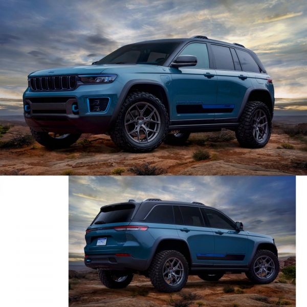 Az új Grand Cherokee csak a 4xe plug-in hibrid hajtással lesz elérhető Európában, de az USA-ban ez csak egy opció – amelyhez aktuálisan nem választható a fokozott terepképességet biztosító Trailhawk csomag. Ez a tanulmány azt példázza, hogy nem zárja ki a jó terepjáróképességet az elektrifizált hajtás, tehát a 400V-os feszültségű elektromos rendszer is elviseli, ha tartósan víz alatt van. A Húsvéti Szafarira a széria-hajtáslánccal vitték el az autót, de a megjelenést azért átalakították egy kicsit, egyedi tetőcsomagtartót szereltek fel, a Mopar-kínálatból származó alsó védőelemeket építették be, és 33 col átmérőjű BFG terepgumikat szereltek a 20 colos felnikre – ezek miatt kiszélesítették a kerékjáratokat is.