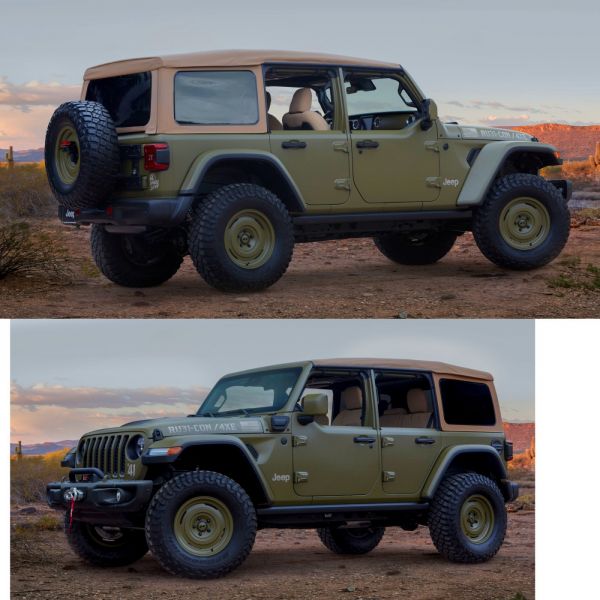 Ahol csak teheti, büszkén hirdeti a márka, hogy „Since 1941”, azaz 81 évvel ezelőtt alapították. Az eredeti Willys megjelenését idézik meg a Jeep 41 tanulmánnyal. Matt olivazöld fényezést kapott a Wrangler 4xe karosszériája, Warn csörlő, Mopar félajtók és egyszerű tetőponyva teszi teljessé az átalakítást, az utastérben szőnyeg helyett mattzöld, könnyen takarítható fújható burkolatot alkalmaznak. A futóművet 5 centivel emelik, a 17 colos acélfelnikre 35 col átmérőjű terepabroncsokat szerelnek.