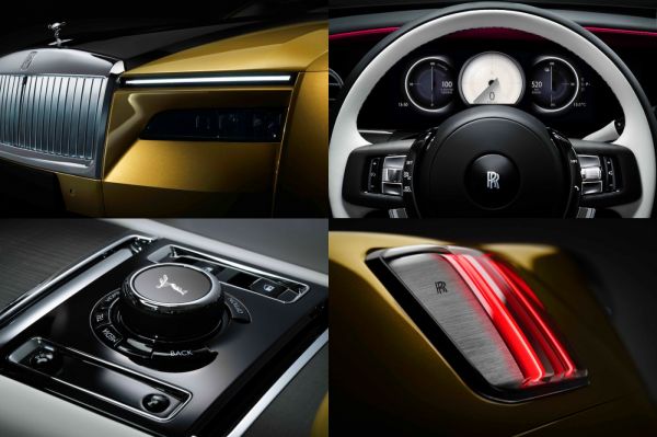 Ami adott, az a Rolls-Royce márka eddigi legáramvonalasabb karosszériája, a Cw 0,5-ös légellenállási együttható elérése érdekében csak az Extázis Szelleme szobor megjelenését 830 órán keresztül csiszolták számítógépen és szélcsatornában, és a hűtőrács – amelyet 22 LED világít meg hátulról – is nagyban hozzájárul ehhez. Megtartották a karosszéria végéig ívelő tetővonalat, a hátsó lámpák burkolata színtelen, a LED-ek adják a vörös vagy narancs fényt – azért döntöttek utóbbi mellett, hogy csak szükség esetén zavarják meg a búrák az ügyfél által kért fényezés szépségét. Nem újdonság a 23 colos felni egy Rolls-Royce esetén, de legutóbb 100 évvel ezelőtt alkalmaztak hasonló méretű felniket.