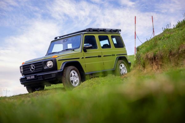 1979-ben indult a G-osztály sorozatgyártása Graz-ban, ahol a Puch és Mercedes-Benz márkanéven forgalmazott példányok készültek – a Peugeot saját maga gyártotta a P4-est –, és itt ünneplik most a félmilliós jubileumot. A most elkészült G500-as retrós megjelenését az 1986-os 280 GE ihlette, annak a agave zöld színét, narancs irányjelző-burkolatát és fekete részleteit kapta meg az új modell, a pótkerék-takaróra a réginek megfelelően nagy méretű márkajelzést rajzoltak fel. Az utastérben is a 280 GE-t próbálták felidézni az ülések középső részének négyzetmintás szövetkárpitjával, az anyósülés előtti kapaszkodón jelenik meg a jubileumi jelvény. A jövőre esedékes 45. évfordulóra dobják majd piacra az akkumulátoros-elektromos változatot, amely a gyár állítása szerint új mércét jelent majd a terepjárók körében.