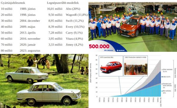1955-ben első japán gyártóként kezdett miniautók sorozatgyártásába a Suzuki Motor Corporation, amely most, 2023 végén értékesítette a 80 milliomodik autóját – ebben a számban az összes, Suzuki márkajelzéssel értékesített autó benne van, de nem számolták bele azokat, amelyeket a Suzuki gyártott más márkák számára (lásd. Opel Agila, Suzuki Sedici, stb.). A legnagyobb piac Japán volt 36%-kal, a legnagyobb exportpiac India 32,6%-kal, a világ többi részén értékesítették a fennmaradó 31,4%-ot – aktuálisan 184 országban van jelen a márka. Első külföldi gyártóegységét 1983-ban nyitotta meg a Suzuki Indiában, majd Magyarország következett 1992-ben; ma már világszerte 10 országban, 15 gyárban készülnek a cég autói.