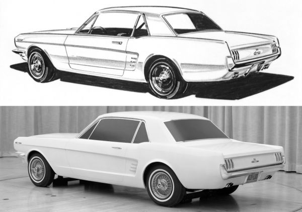 Ezt követően őt bízták meg a Cougar néven tervezett autó formatervét készítő csapat vezetésével, először is megépítették az életnagyságú agyagmodellt, hosszú motorháztetővel, ovális fényszórókkal, és az oldalanként három hátsó lámpával. A fejlesztés során aztán a nevet Mustangra változtatták, a fényszórók kerekek lettek, de alapvetően az első autó került sorozatgyártásba. Halderman tervezte meg a szintén legendássá vált logót.