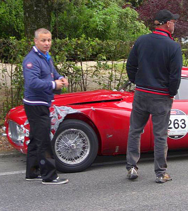Fotó: Asterio Tubaldi Még pénteken délután, Recanti közelében egy kanyargós útvonalon veszítette el uralmát egy fiatal román hölgy az általa vezetett Hyundai Atos fölött egy kanyargós útszakaszon, amely baleseti gócpont a hasonló sávelhagyások miatt. A szemből érkező, 1953-ban gyártott, és az eredeti Mille Miglia versenyen is induló Fiat 8V berlinetta orrának ütközött. Az utóbbiban helyet foglaló, Egyesült Államokbeli páros (Martin Gruss és Michel Brogard) sérülés nélkül megúszta az esetet, a végül a szalagkorlátnak ütközve megálló Hyundai vezetőjét kórházba kellett szállítani.