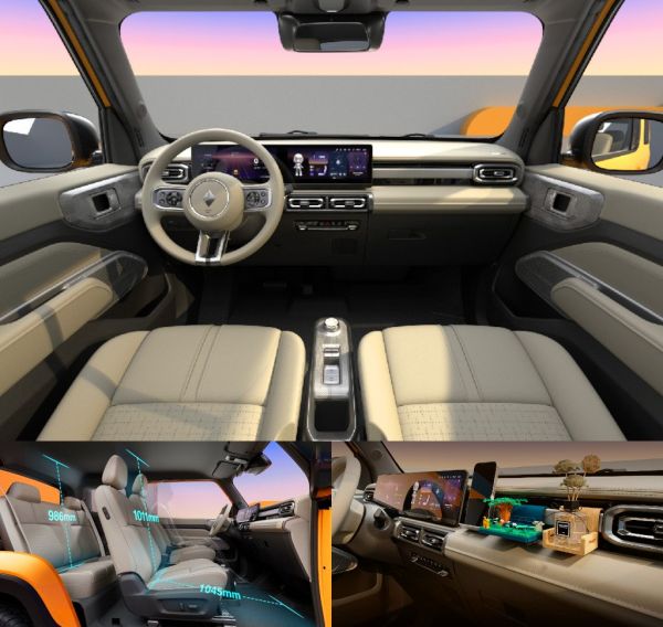 Végre van kép a műszerfalról is, amely közös búra mögé szerelt kijelzőket jelent, az anyósülés előtti kapaszkodó ahhoz túl messze van, hogy azt tényleg használni lehessen (egyébként se terepjáró a csak hátsókerékhajtású autó), cserébe ide különféle gyári kiegészítőket lehet aggatni, például okostelefon-tartót, tárolópolcot satöbbi. A Baojun Yep hajtómotorja 68 LE/140 Nm teljesítményű, a lítium-vas-foszfát akkumulátorral 303 km a kínai szabvány szerinti hatótávolság, a biztonság kedvéért 100 km/órában korlátozzák a végsebességet, a sofőr pedig a DJI által kifejlesztett kamera-alapú vezetőtámogató rendszerekre támaszkodhat.