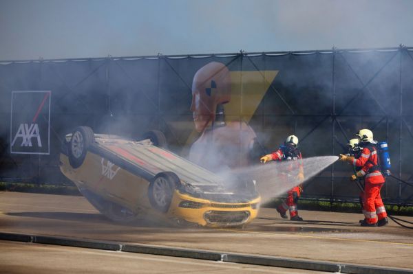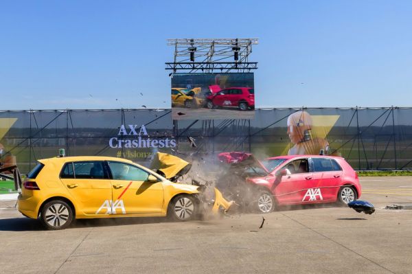 A villanyautók új veszélyeket jelentenek a közúton közlekedőknek, amit az AXA biztosítótársaság látványos bemutatóval próbált illusztrálni. A villanyautók nagyobb tömegük miatt balesetnél nagyobb terhelést adnak az energiaelnyelő zónáknak – a benzin- és a villanymotoros VW Golf ütköztetésével illusztrálták –, és mivel szinte kivétel nélkül a padló alatt helyezkednek el az akkumulátorok, azok bizonyos helyzetekben könnyen sérülnek – ezt egy rámpára vezetett Tesla Model S-sel demonstrálták. Majd miután az autó felborult, pirotechnikai eszközökkel felgyújtották az autót a látvány kedvéért. Ezt az információt, mármint hogy biztonsági okokból kivették az autóból az akkumulátort és hogy a tűz szimulált, nem osztották meg az eredeti sajtóközleményben – igaz, a videón látszik, hogy nem a jellegzetes akkumulátor-tűzzel van dolgunk.