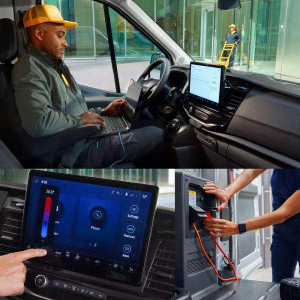 Az akkumulátoros-elektromos E-Transit esetén a Ford legmodernebb, az előzőnél kétszer gyorsabb processzorral és nagyobb, 12 colos képátlójú érintőképernyős SYNC4-es fejegységét építi be, ami fejlett online szolgáltatásokat kínál a megszokott távoli hozzáférés funkciókon felül. Most pedig ezt a fejegységet elérhetővé teszik a dízelmotoros Transitnál is, amely ezen felül még körkamerát és tolatósegédet is kaphat – utóbbi akadály észlelésekor lefékezi az autót.