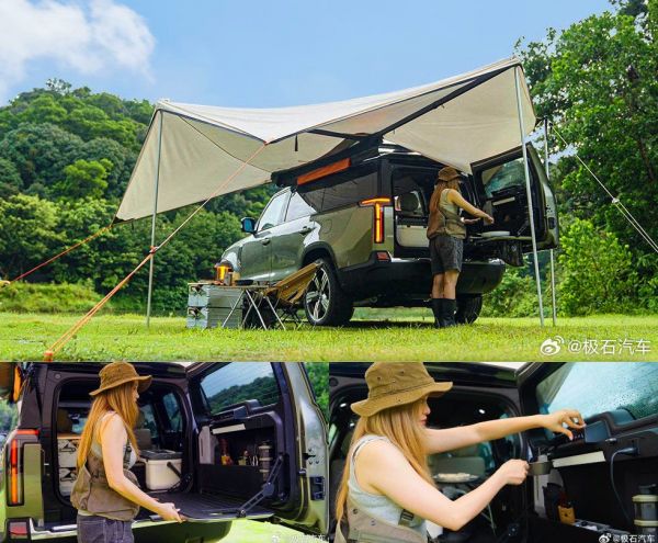 A Stone 01-es legérdekesebb része, hogy ahhoz kezdettől fogva elérhetőek lesznek kemping-kiegészítők, amelyek között az autóhoz csatlakoztatható árnyékolóponyvától kezdve az oldalra nyíló hátsó ajtóban megbújó konyháig mindent megtalálunk. A lenyitható munkalapon lehet használni az elektromos főzőlapot, van frissvíz-tartály és rengeteg tárolási lehetőség.